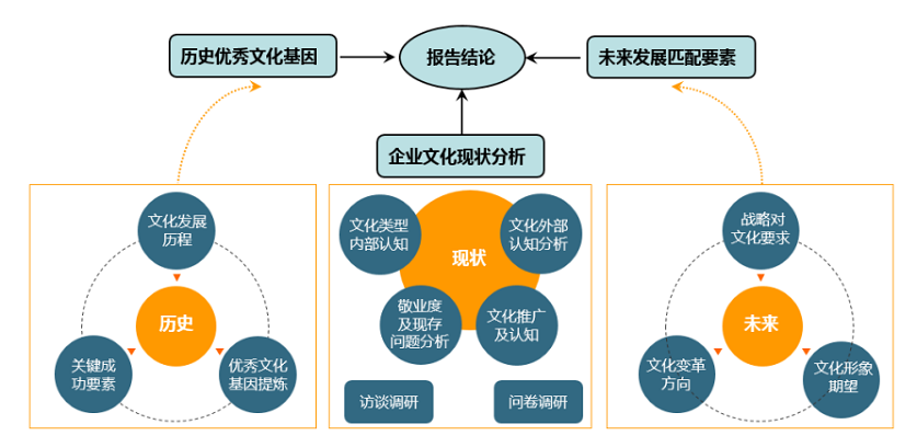 3、企業(yè)文化如何評估和診斷:對此,漢哲采用三層次文化診斷模型,從“歷史”、“現(xiàn)狀”、“未來”三個時空維度,對企業(yè)文化進行全面評估與分析,為企業(yè)文化建設奠定方向和基礎。