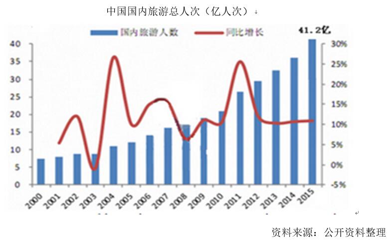 2015年全年接待國內(nèi)外旅游人數(shù)為41.2億人次,旅游總收入達到4.13萬億元,對GDP綜合貢獻達到10.1%,成為經(jīng)濟增長新引擎。另外實現(xiàn)了"十二五"時期旅游業(yè)發(fā)展的漂亮收官,并開啟了旅游發(fā)展的新時代。