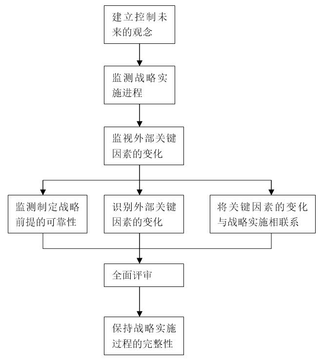 戰(zhàn)略實施控制程序的執(zhí)行是為了達到戰(zhàn)略推進的兩個目的:一是檢查現(xiàn)行戰(zhàn)略實施的有效性;二是提供使經(jīng)營戰(zhàn)略適應(yīng)變化環(huán)境的內(nèi)在機制。