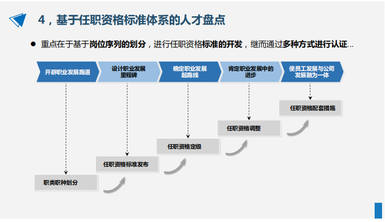 基于任職資格的人才盤點(diǎn),強(qiáng)調(diào)基于崗位/崗位序列的關(guān)鍵職責(zé)進(jìn)行知識(shí)、技能、能力、素質(zhì)、業(yè)績(jī)等綜合資質(zhì)的萃取與評(píng)價(jià),更加強(qiáng)調(diào)任職者綜合資質(zhì)與所承擔(dān)的職責(zé)之間的業(yè)務(wù)關(guān)聯(lián)性?;谌温氋Y格的人才盤點(diǎn),一是有助于對(duì)戰(zhàn)略實(shí)現(xiàn)所需要的能力進(jìn)行超前規(guī)劃;二是有助于知識(shí)萃取,將存在于少數(shù)員工心中、腦中的技能轉(zhuǎn)化為組織智商,促進(jìn)“學(xué)習(xí)型組織”的建設(shè);三是有助于人才復(fù)制,即根據(jù)公司的知識(shí)地圖、能力地圖,批量生產(chǎn)人才,在人才管理的整個(gè)鏈條中占有主動(dòng)權(quán)。