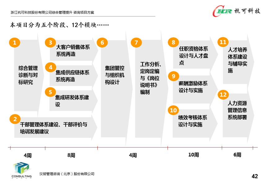 整個項目計劃歷時八個月,將圍繞四個目標,建成四大體系,構(gòu)建四支隊伍,項目的落地實施將助力杭可科技走上國際化、規(guī)?;c職業(yè)化之路,將注定在企業(yè)的發(fā)展歷史上寫下濃墨重彩的一筆。