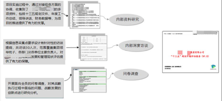 通過資料研究、高層訪談、調(diào)查問卷等形式明確十三五戰(zhàn)略執(zhí)行情況。