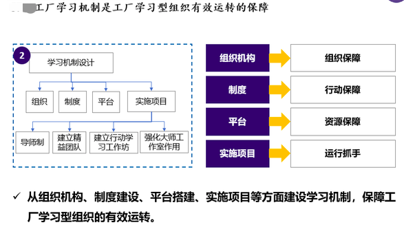 從組織機(jī)構(gòu)、制度建設(shè)、平臺(tái)搭建、實(shí)施項(xiàng)目等方面建設(shè)學(xué)習(xí)機(jī)制,保障工廠學(xué)習(xí)型組織的有效運(yùn)轉(zhuǎn)。