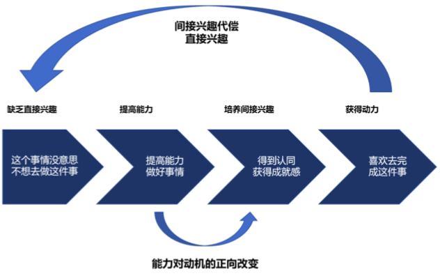 (一)開啟正向思考的視角。對于缺乏直接興趣的工作和事情,間接興趣從另一個角度,開啟了正向思考的視角。很多工作需要投入極大的時間、精力、耐心和意志力,就過程而言,如同沒有沿途風(fēng)景攀山,在疲憊、煩躁、厭倦襲來時,困在負面情緒里咀嚼沒有任何意義。這時,想象工作完成之后帶來的成就感、成長感和獲得感,就是用間接興趣在自我激勵。通過間接興趣來完成內(nèi)部的心理建設(shè)和自我激勵,可以獲得更多能量。