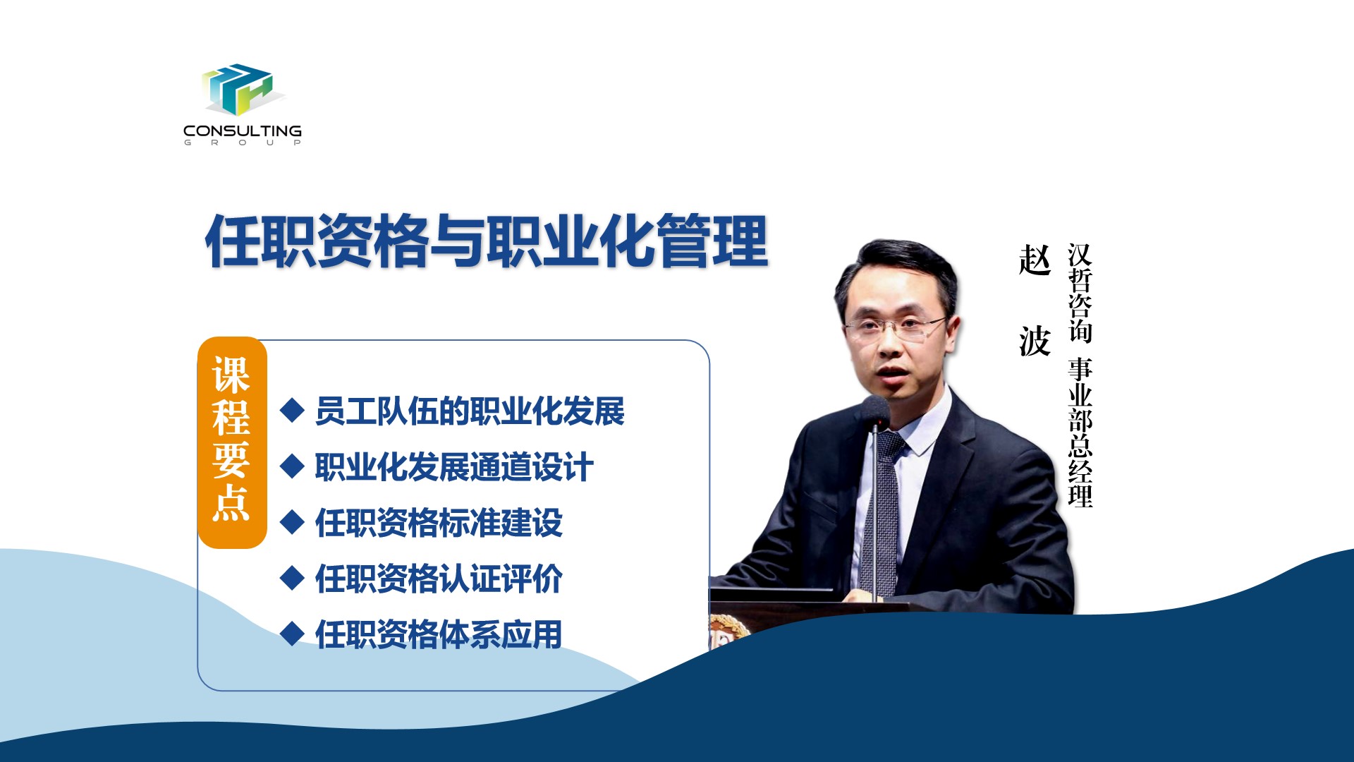 講師趙波,漢哲管理咨詢(xún)事業(yè)部總經(jīng)理、西安科技大學(xué)碩士、國(guó)際注冊(cè)管理咨詢(xún)師。趙波老師在組織體系設(shè)計(jì)、人力資源管理等領(lǐng)域有豐富的理論和咨詢(xún)經(jīng)驗(yàn)。多年來(lái),咨詢(xún)及培訓(xùn)客戶(hù)包括:民航成都電子、中核海得威、中廣核、中國(guó)郵政、蘇州金螳螂、北京電控集團(tuán)、呼市城發(fā)集團(tuán)等知名企事業(yè)單位。