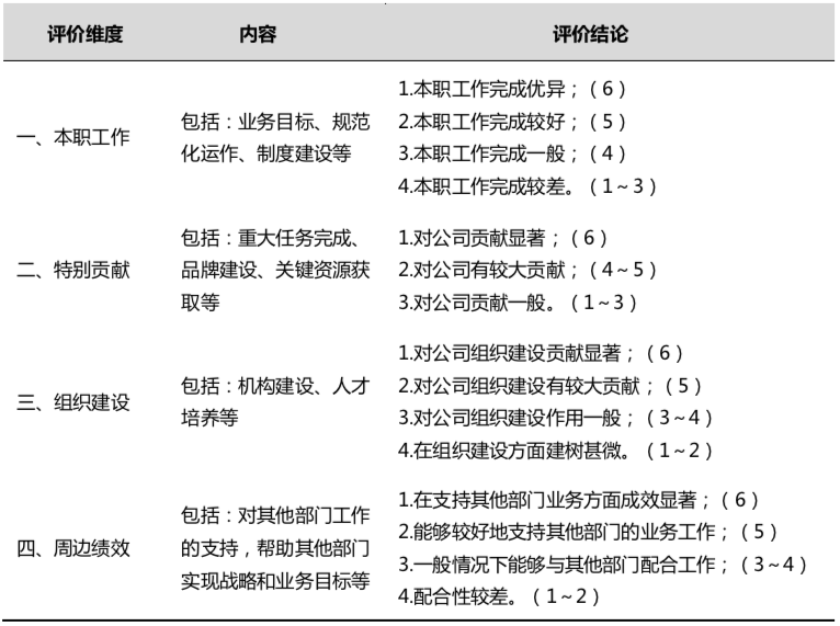 在績效維度,直接采用本公司年度績效考核結(jié)果,如沒有績效考核數(shù)據(jù),那么通過設(shè)計便捷的績效考核評價方法進行評價。