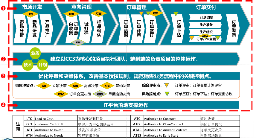 結(jié)合公司當(dāng)前訂單實施現(xiàn)狀,按照華為LTC訂單模型對主業(yè)務(wù)流程進(jìn)行二級流程分解,并對流程執(zhí)行的關(guān)鍵節(jié)點進(jìn)行定義,為詳細(xì)流程分析提供框架