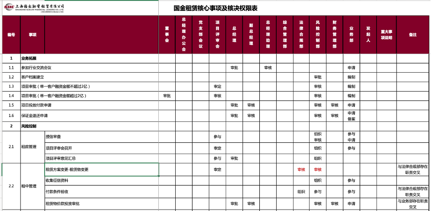 對(duì)公司各項(xiàng)管理活動(dòng)涉及的部門和相應(yīng)的決策會(huì)議進(jìn)行權(quán)限梳理,明確相應(yīng)的權(quán)限