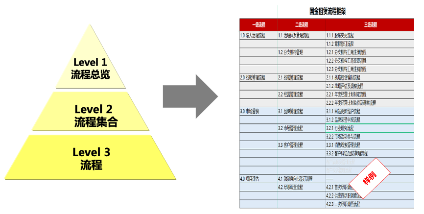 搭建分類流程體系框架,梳理流程總圖,確保最終的流程體系能夠支撐公司業(yè)務(wù)發(fā)展。