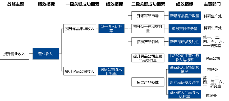 從戰(zhàn)略目標(biāo)出發(fā),層層梳理戰(zhàn)略主題、關(guān)鍵成功因素與指標(biāo)的邏輯關(guān)系,同時(shí)分析指標(biāo)間相互影響關(guān)系,進(jìn)一步識(shí)別影響戰(zhàn)略目標(biāo)的核心績效指標(biāo)。通過繪制樹狀的指標(biāo)關(guān)系圖,明確各個(gè)指標(biāo)與戰(zhàn)略的相關(guān)性,以此判斷指標(biāo)的戰(zhàn)略重要性,并根據(jù)指標(biāo)與其他指標(biāo)的關(guān)系判斷該指標(biāo)的影響范圍,幫助管理者定位需關(guān)注的關(guān)鍵領(lǐng)域。通過指標(biāo)關(guān)系圖可明確指標(biāo)的戰(zhàn)略重要性及影響度,以此為參考篩選核心指標(biāo)。