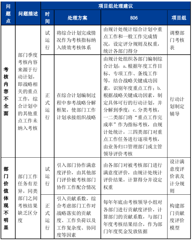 為驗(yàn)證方案可行性,分別在組織考核和崗位考核方案設(shè)計(jì)完成后開展試點(diǎn)考核,模擬考核流程和數(shù)據(jù),并針對(duì)反饋問題進(jìn)行方案調(diào)整和完善。