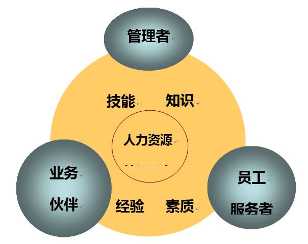 如圖所示,在HR/314 模型中,“3”是指人力資源經(jīng)理的三種角色,即:管理者、業(yè)務(wù)伙伴、員工服務(wù)者;“1”是指一個理念,即:人力資源管理理念;“4”是指四個勝任維度,即:技能、知識、經(jīng)驗、素質(zhì)。