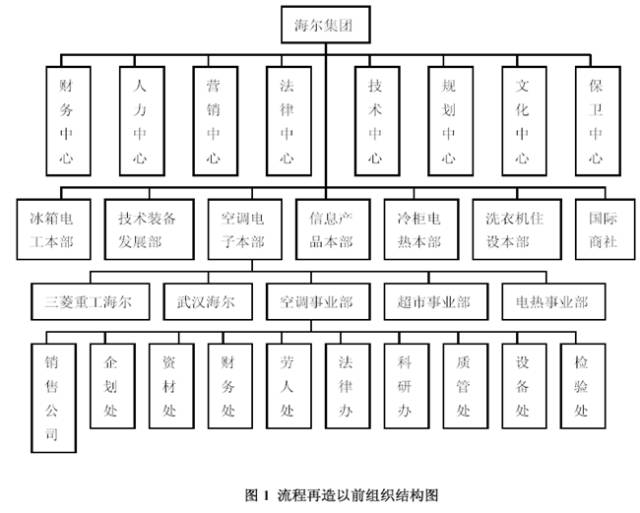 海爾集團此次流程再造前、后的組織機構(gòu),如下圖所示: