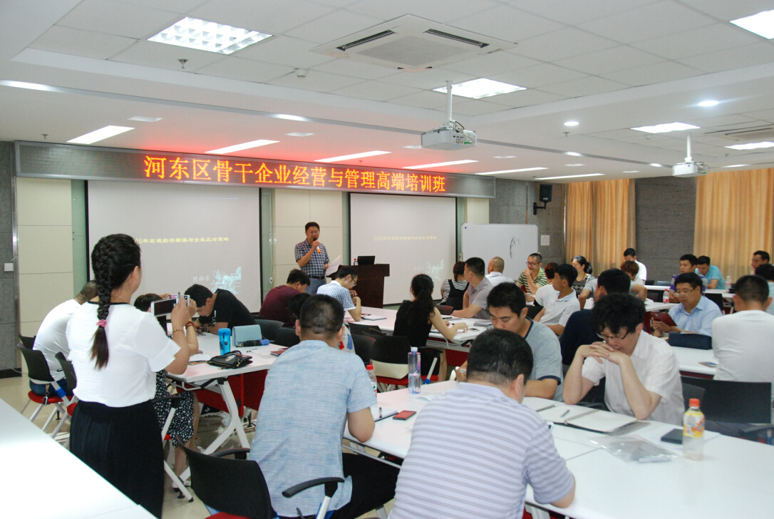河?xùn)|區(qū)經(jīng)信局領(lǐng)導(dǎo)主持了開班儀式并做了主題發(fā)言。根據(jù)企業(yè)的需求,本次培訓(xùn)班設(shè)計了戰(zhàn)略、運營、人力資源三大課程單元。