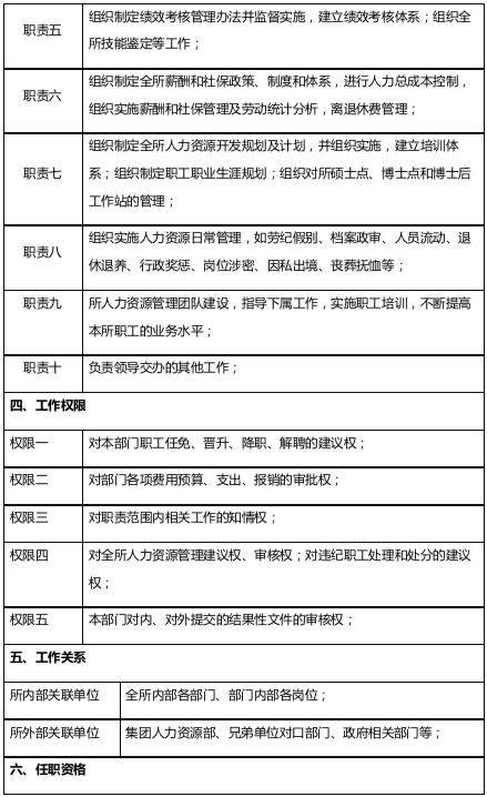 通過(guò)工作分析對(duì)崗位有了更為清晰了解的基礎(chǔ)上,形成了規(guī)范的《人力資源部部長(zhǎng)崗位說(shuō)明書(shū)》。