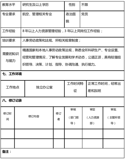 表:人力資源部部長(zhǎng)崗位說(shuō)明書(shū)