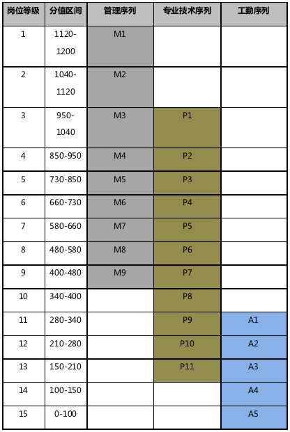 表:專(zhuān)業(yè)序列崗位等級(jí)劃分