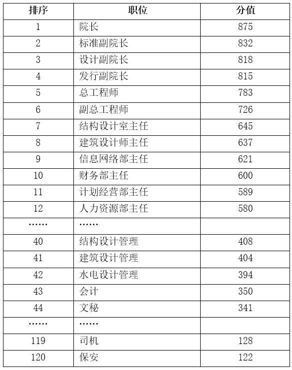 GX建筑設(shè)計(jì)研究院崗位評(píng)價(jià)結(jié)果(示意)