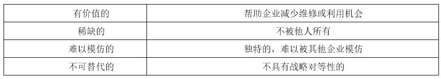 表1:衡量核心競(jìng)爭(zhēng)能力的四個(gè)指標(biāo)