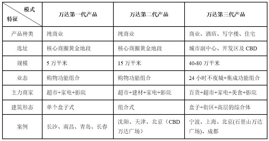 表:萬達產(chǎn)品線圖解