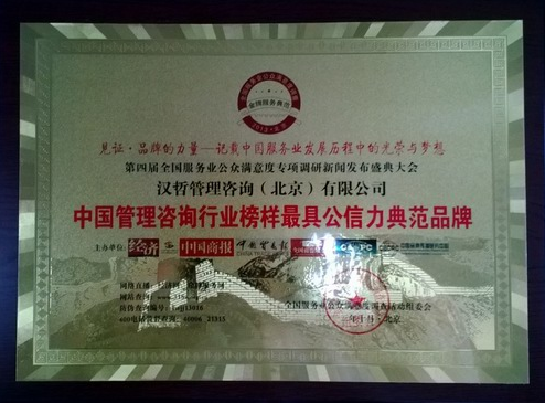 近日,漢哲管理咨詢(北京)有限公司在第四屆全國服務業(yè)公眾滿意度專項調研中榮獲“中國管理咨詢行業(yè)榜樣最具公信力典范品牌”獎。同時,漢哲咨詢集團總裁段磊博士榮獲“引領行業(yè)發(fā)展杰出貢獻人物”獎。